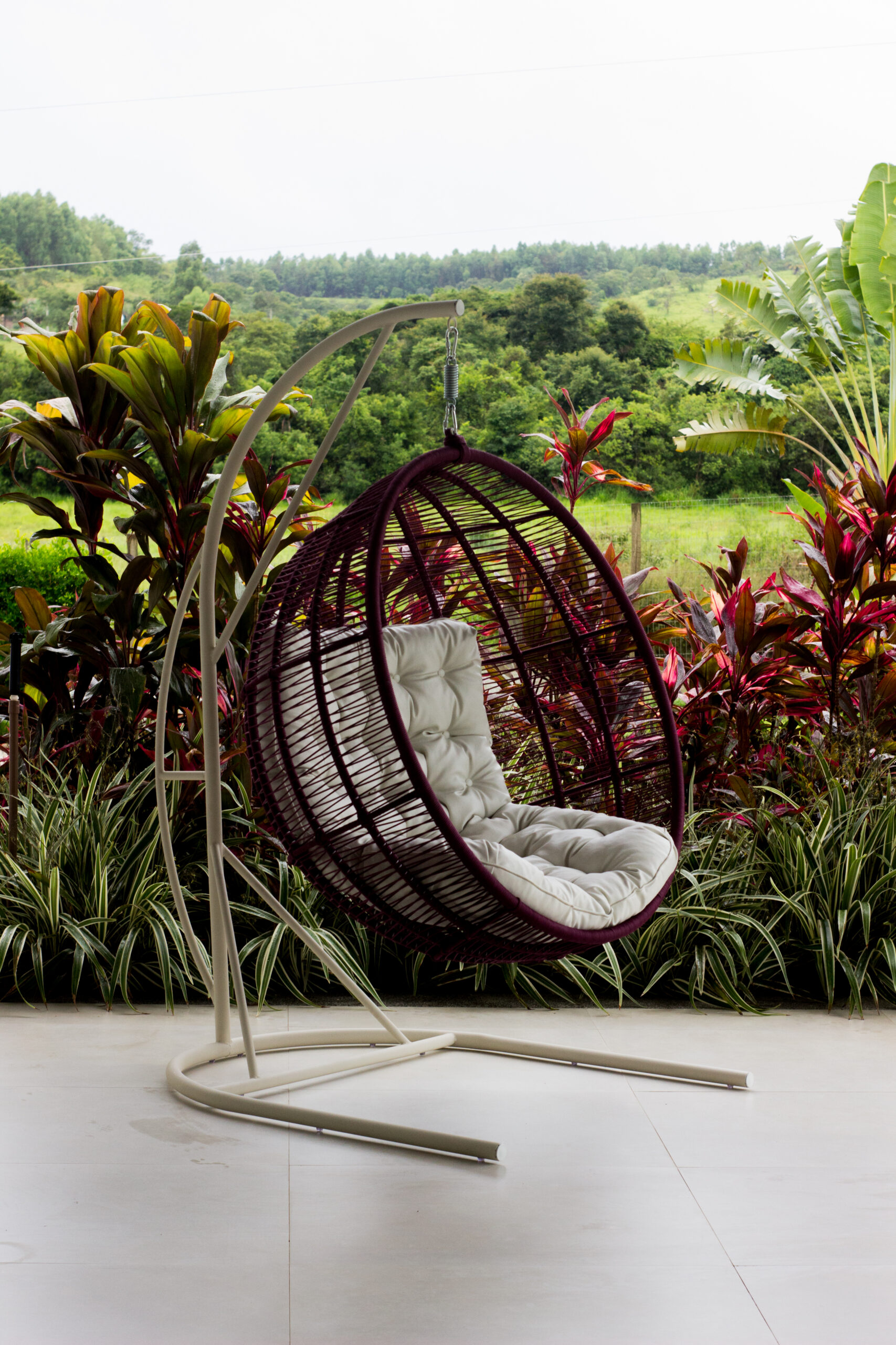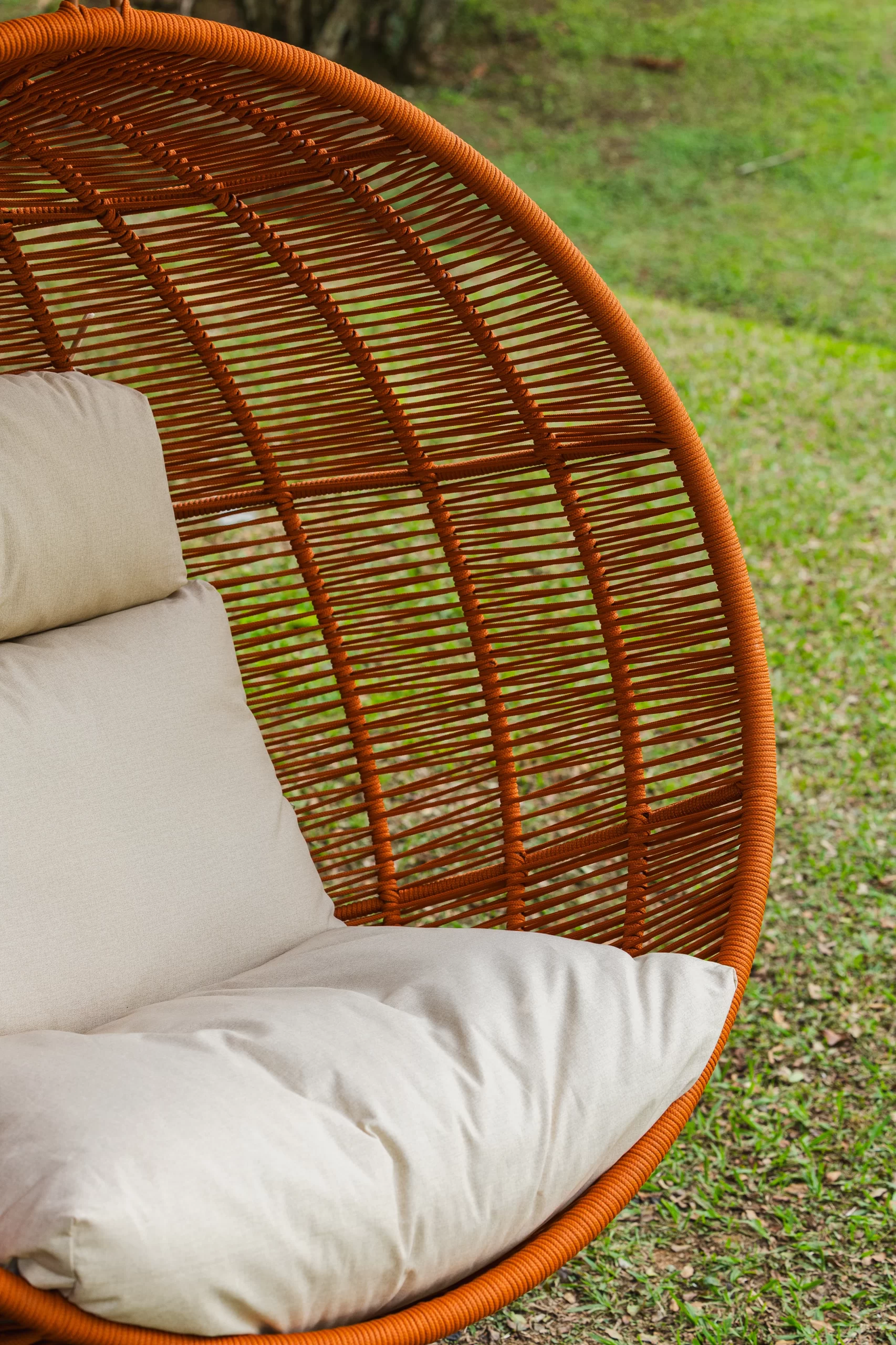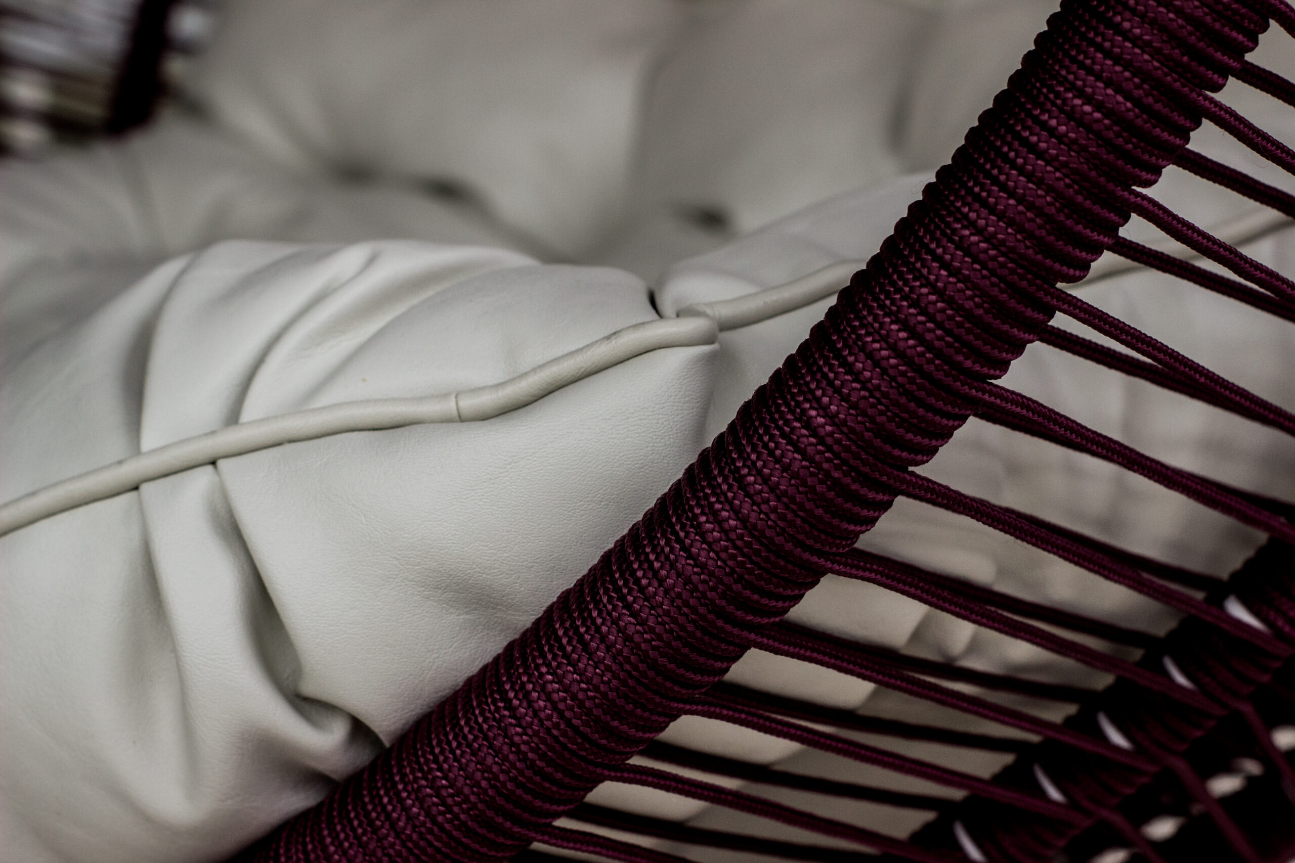 Balanço com estrutura em alumínio revestido com pintura eletrostática e trama em corda náutica.
