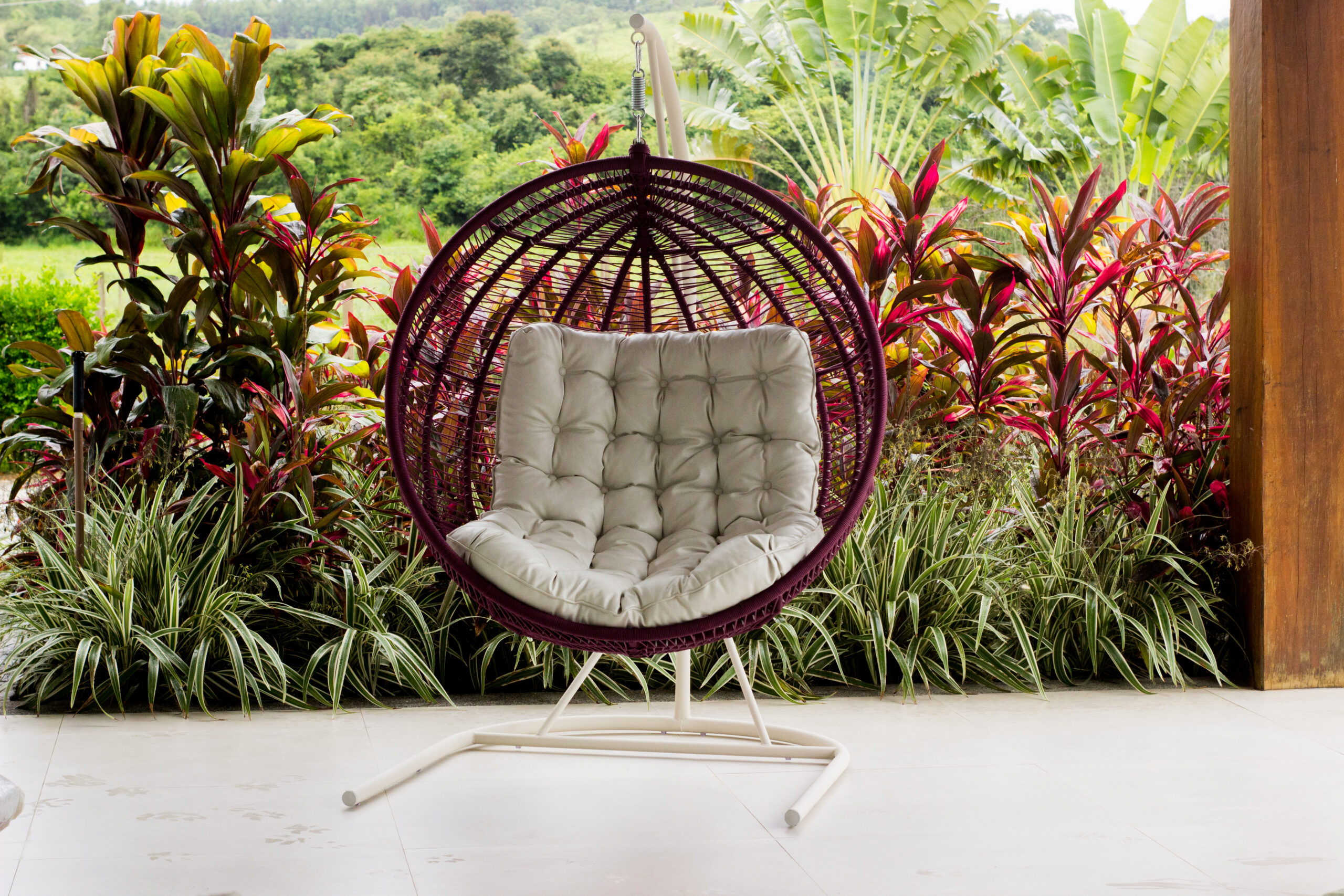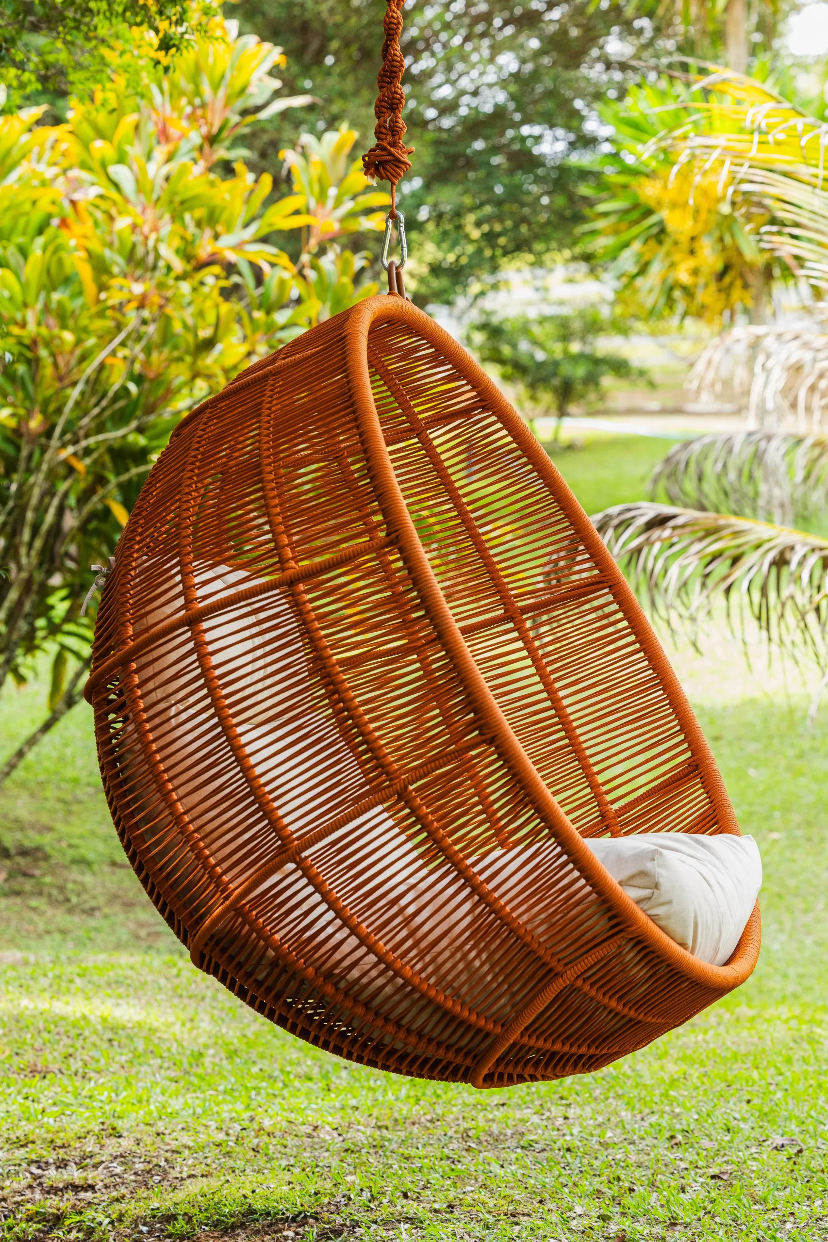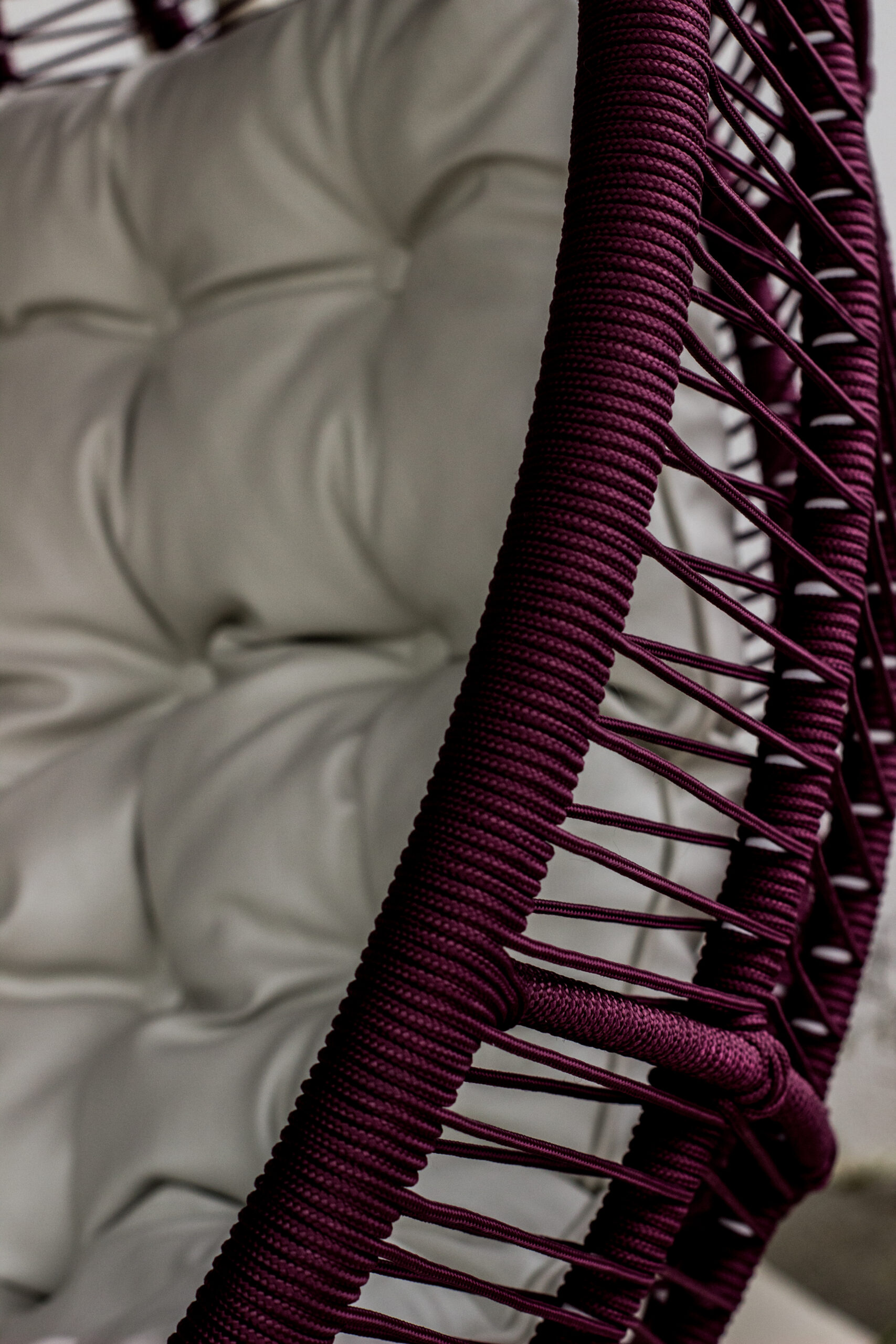 Balanço com estrutura em alumínio revestido com pintura eletrostática e trama em corda náutica.