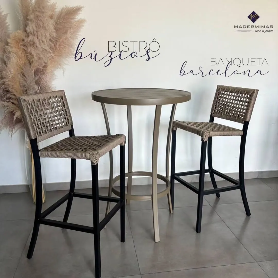 Mesa Bistrô com estrutura e tampo em alumínio ripado revestido com pintura eletrostática.