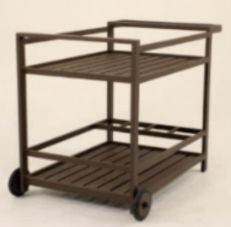 Carrinho bar com estrutura de alumínio revestido com pintura eletrostática, e bandejas.
