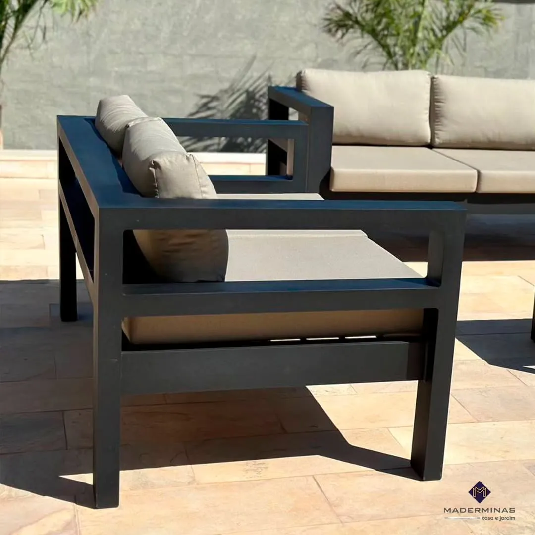 Sofá com estrutura em alumínio. Poltrona com estrutura em alumínio.