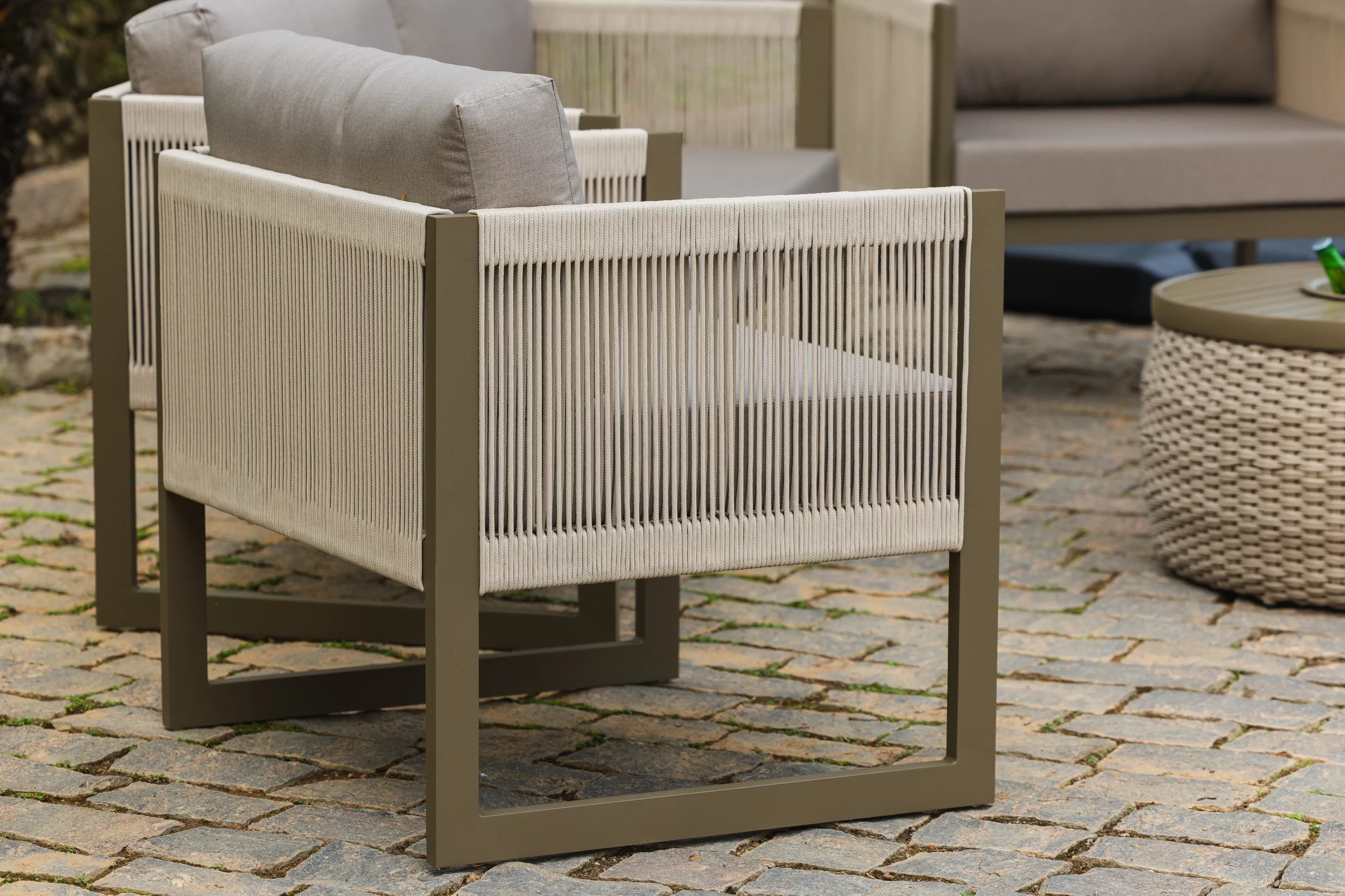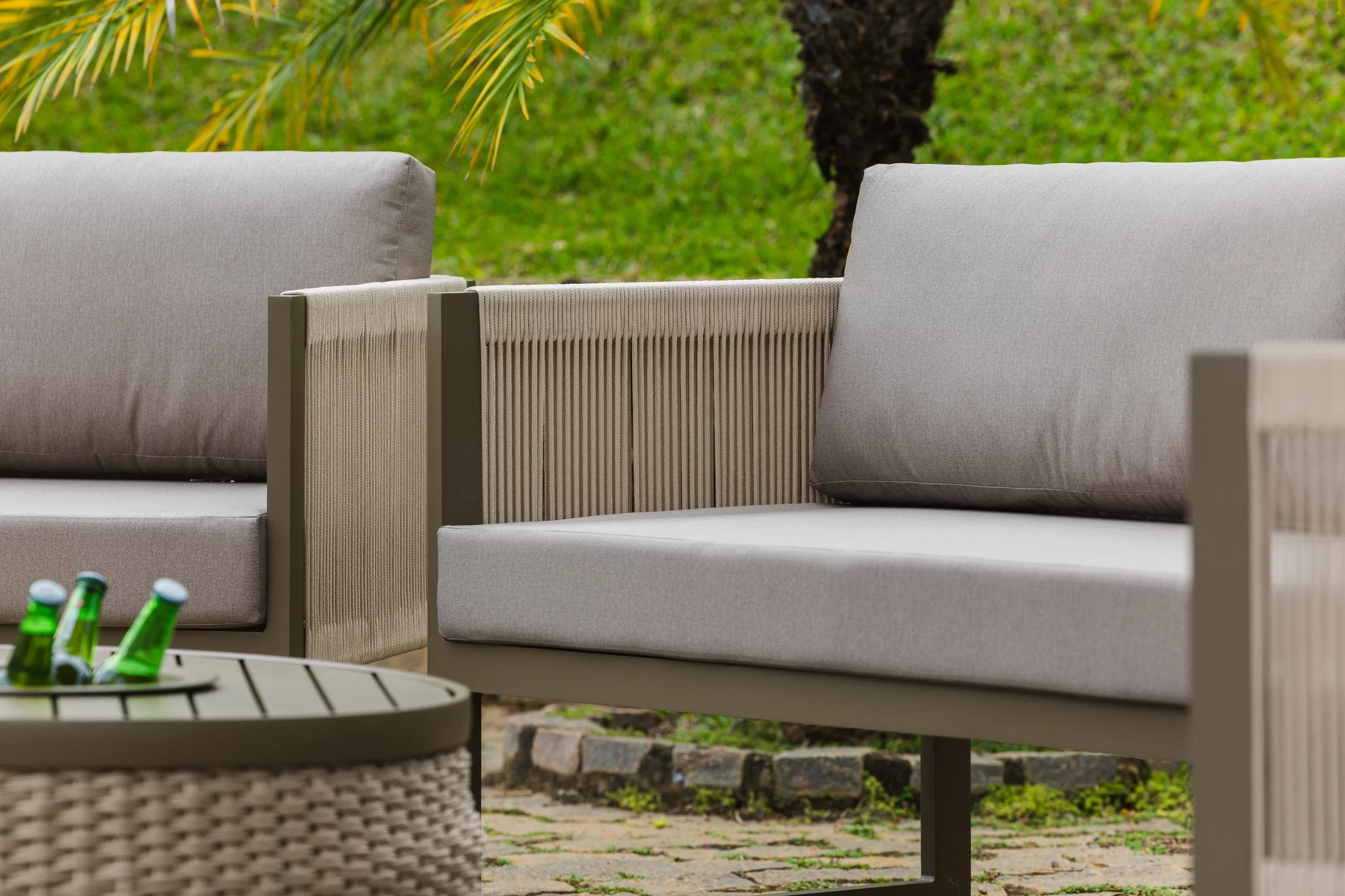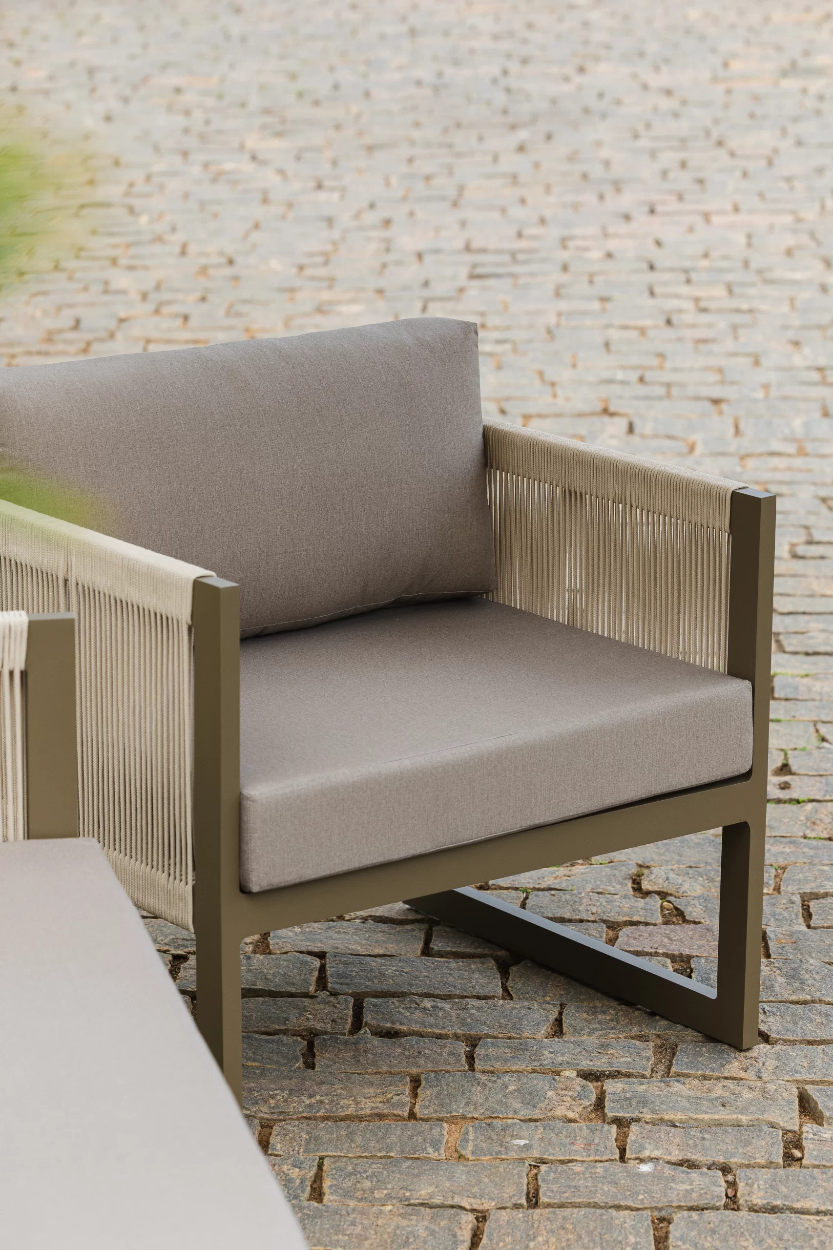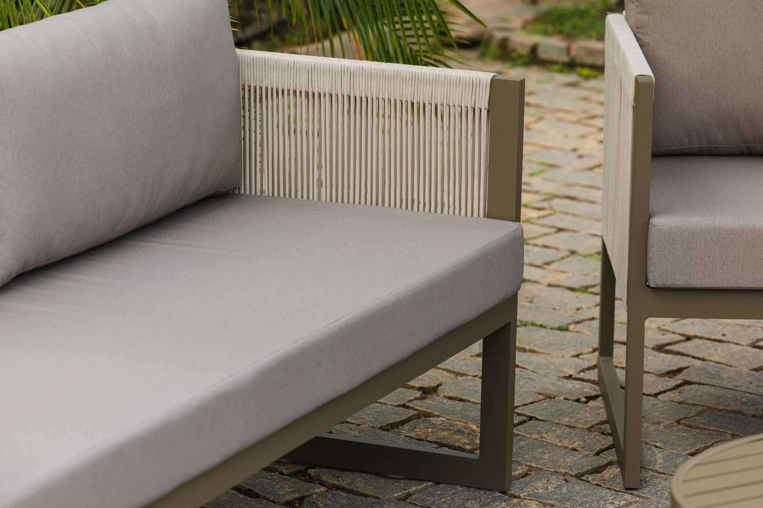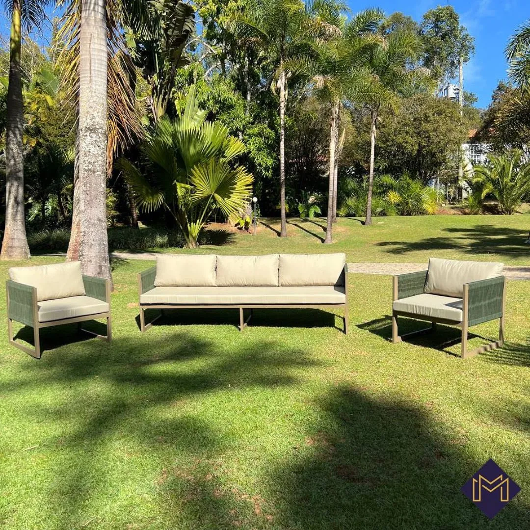Sofá com estrutura em alumínio. Poltrona com estrutura em alumínio.