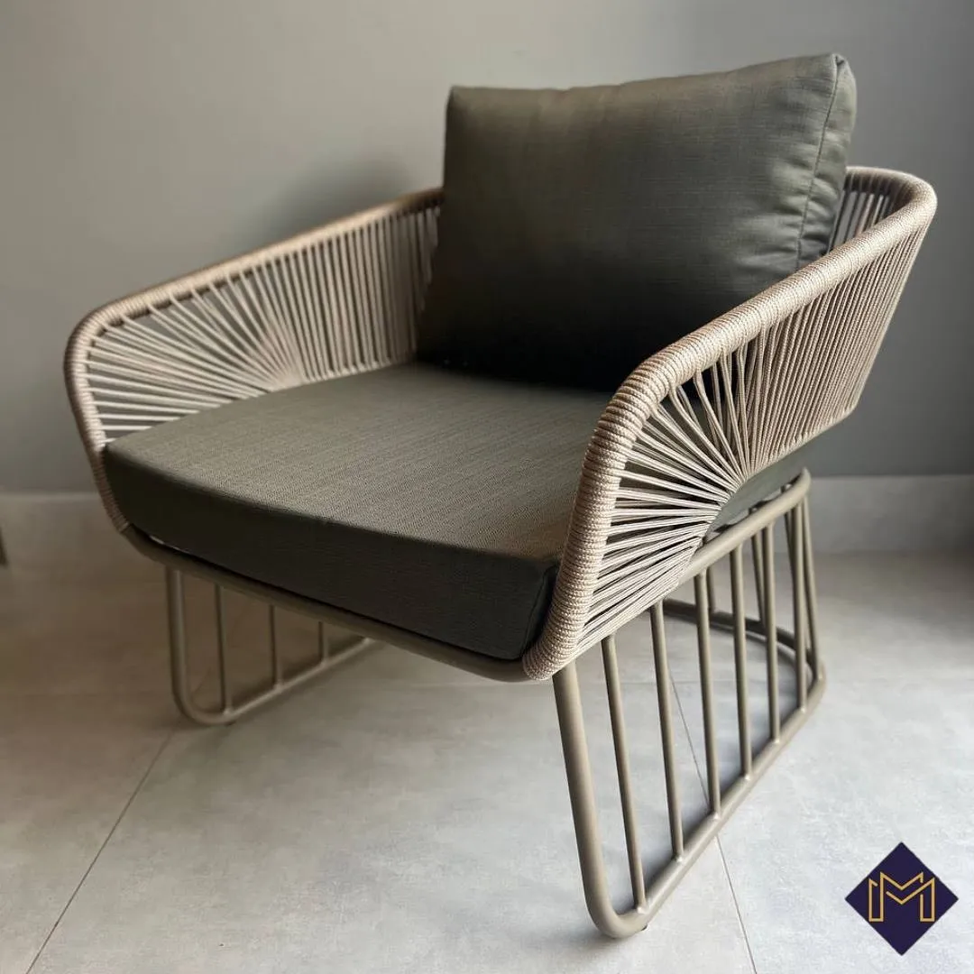 Sofá com estrutura em alumínio. Poltrona com estrutura em alumínio.