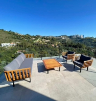 Conjunto Shankai, acompanhado de um sofá, acompanhado de 2 poltronas e uma mesa de centro.
