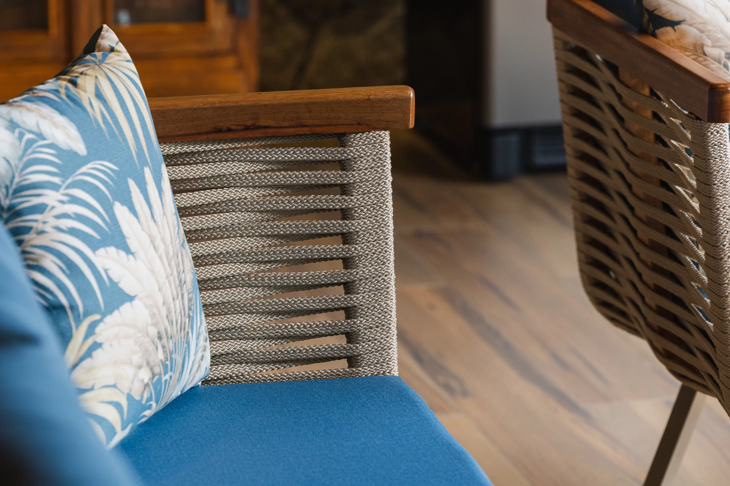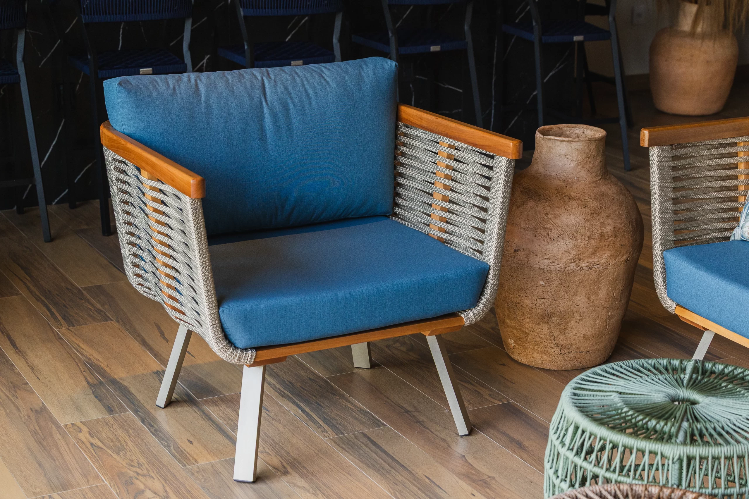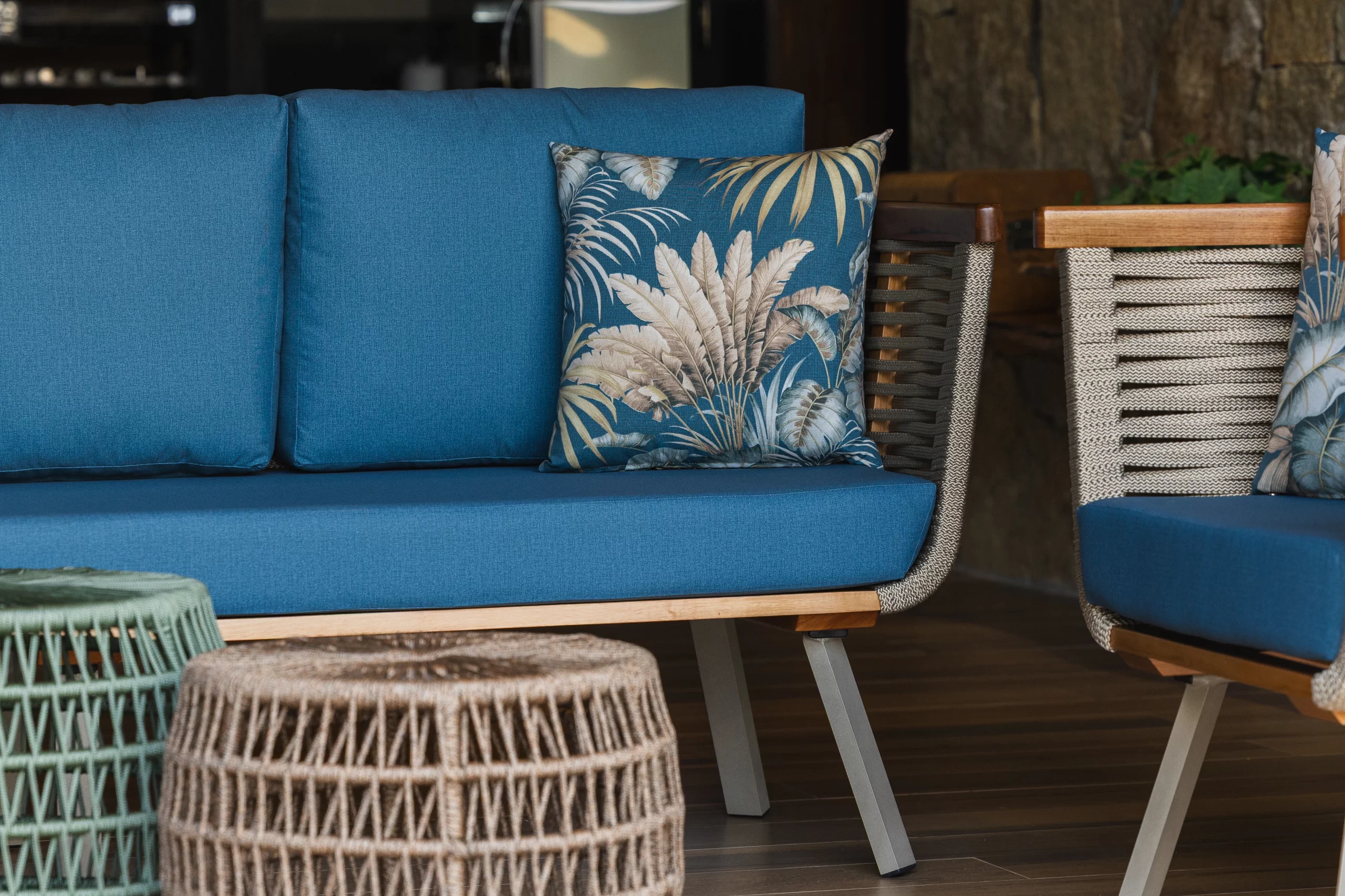 Conjunto Veneza, acompanhado de um sofá, acompanho de duas poltronas e uma mesa de centro.
