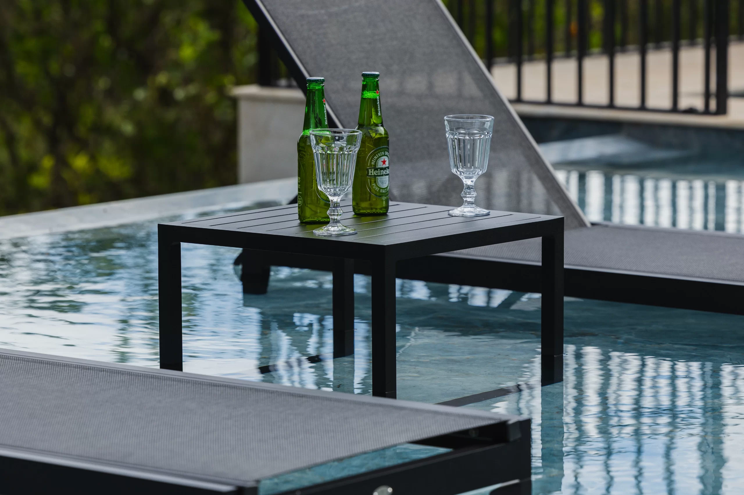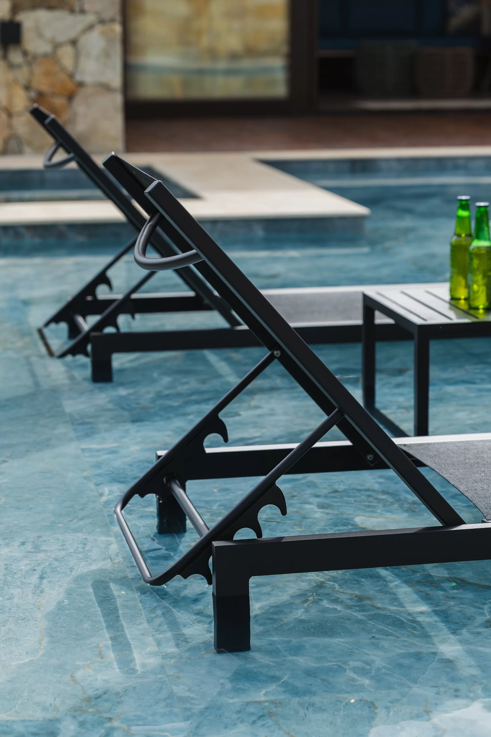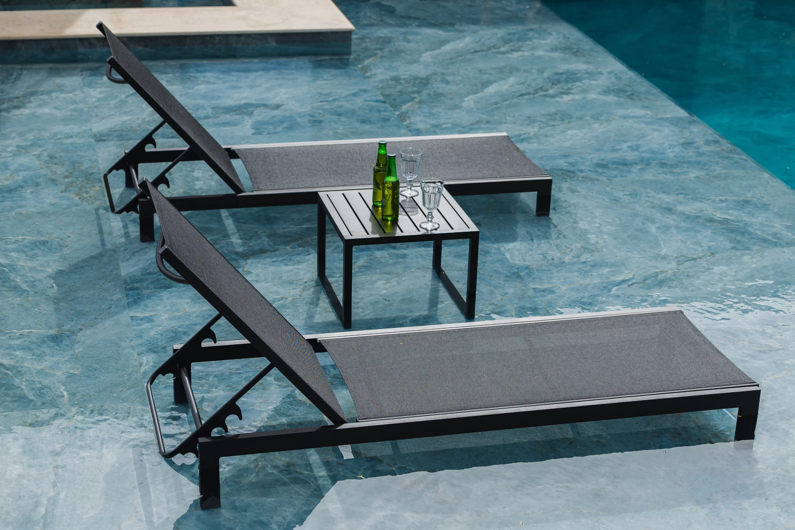 Espreguiçadeira com estrutura em alumínio revestido com pintura eletrostática, em tela sling.